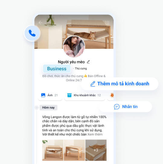 - Thiết lập hồ sơ kinh doanh, các tính năng quản lý bán hàng và bắt đầu sử dụng Zalo Business để tương tác với khách hàng.