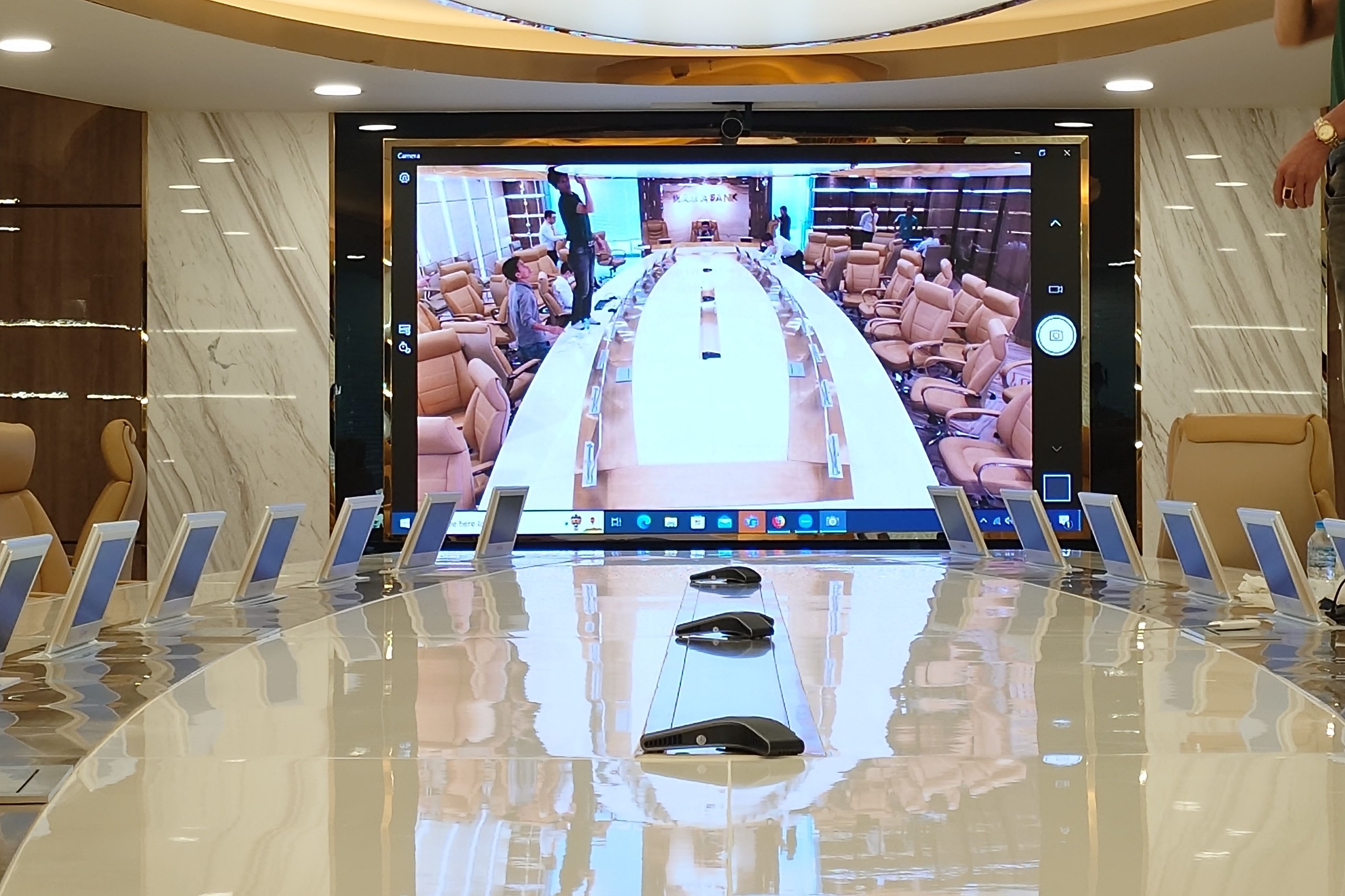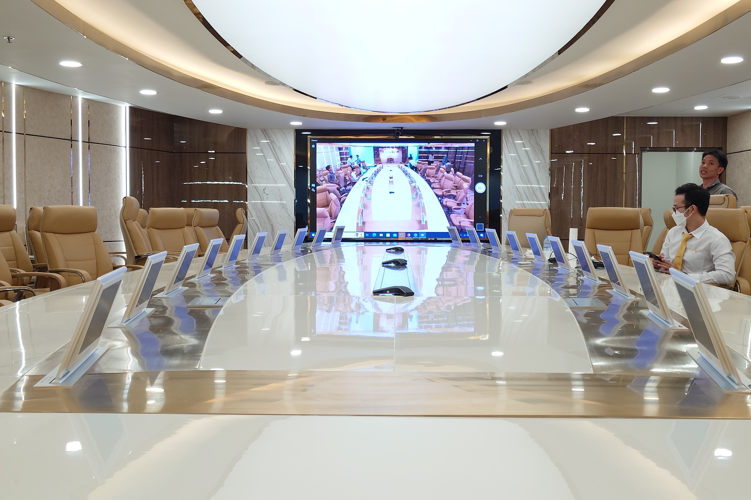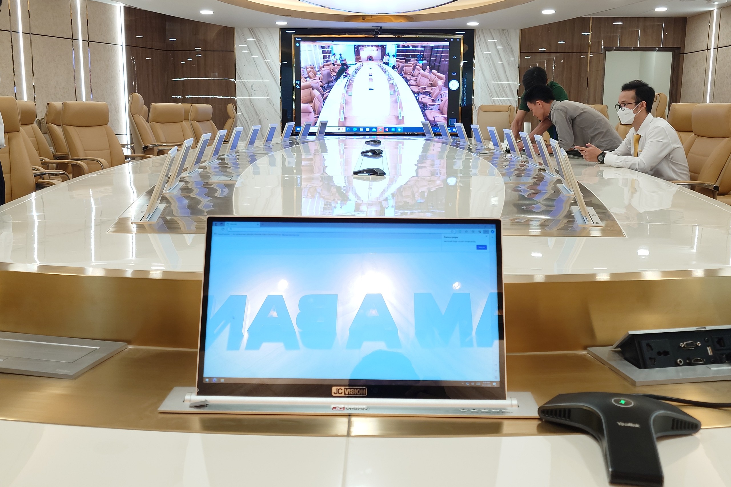 Với không gian phòng họp lớn cùng hệ thống micro, loa sẵn có, giải pháp được lựa chọn triển khai cho 2 phòng họp doanh nghiệp là giải pháp kết hợp camera Yealink UVC84, Yealink UVC86 cùng thiết bị kết hối và điều khiển của Yealink. Đây là giải pháp camera hoàn hảo cho không gian phòng họp lớn củadoanh nghiệp giúp đảm bảo chất lượng hình ảnh và âm thanh tốt cho các cuộc họp.