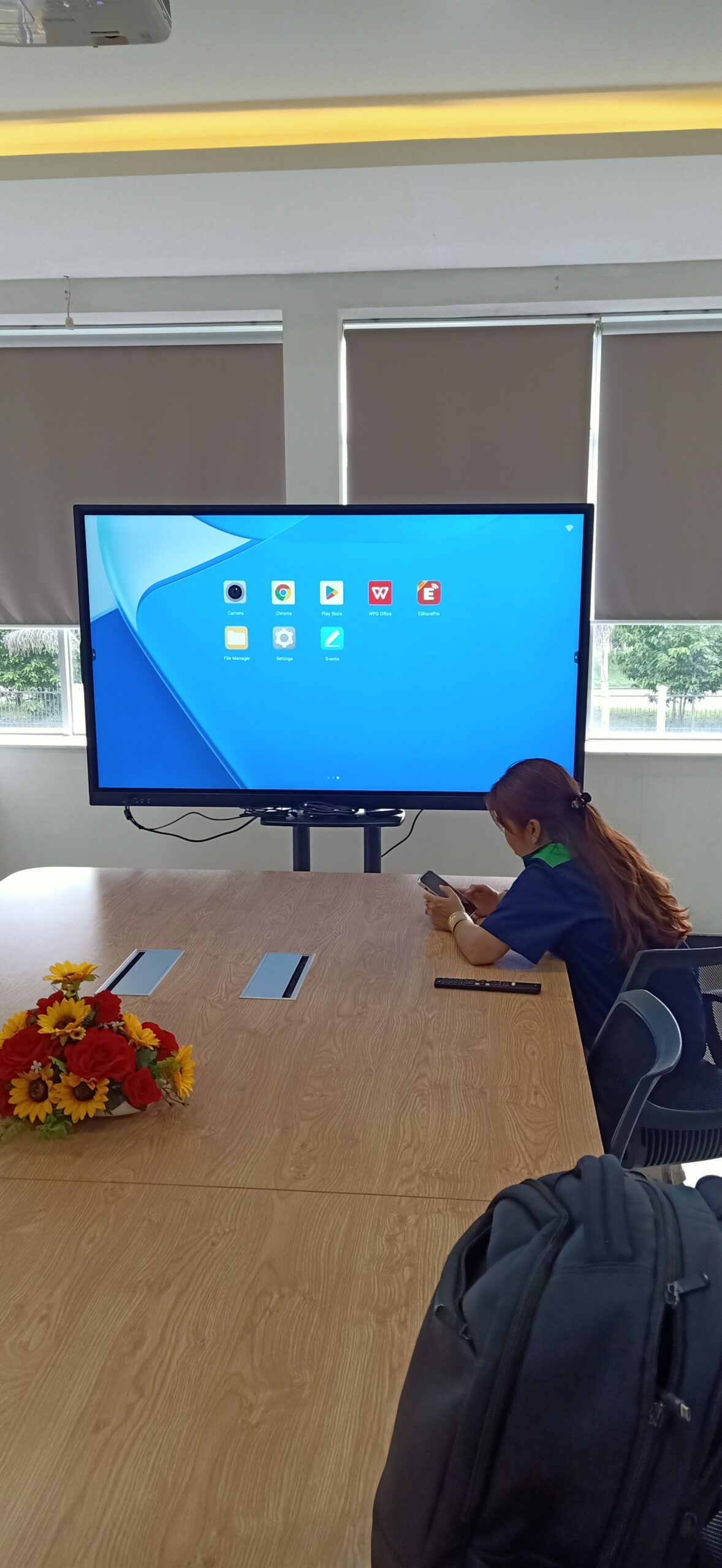 Với không gian phòng họp vừa và nhỏ của phòng họp Công ty TNHH Công Nghệ SINOMAG VIỆT NAM, giải pháp màn hình tương tác All-in-one Hiboard là hoàn toàn phù hợp. Màn hình Hiboard tích hợp All-in-one tất cả các thiết bị cần thiết hỗ trợ cho cuộc họp trực tuyến từ màn hình LED cảm ứng, webcam, micro, loa, đem đến một giải pháp toàn diện cho người dùng.