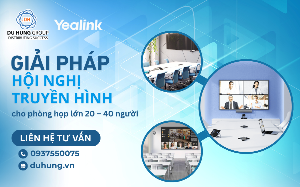 Để được tư vấn về Giải pháp hội nghị truyền hình cho phòng họp lớn 20 – 40 người vui lòng liên hệ đến Du Hưng theo Hotline/Zalo 0937550075 – Mr.Ẩn để được hỗ trợ tốt nhất.