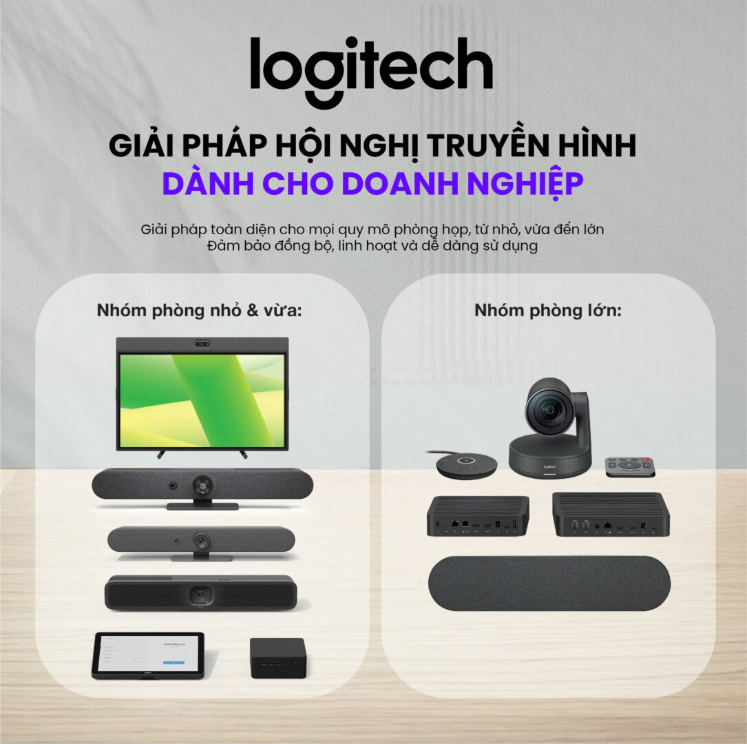 Hội nghị trực tuyến đã trở thành giải pháp giao tiếp thiết yếu trong doanh nghiệp hiện đại, giúp kết nối nhanh chóng – tiết kiệm – linh hoạt giữa các phòng ban, chi nhánh và đối tác toàn cầu. Tuy nhiên, để cuộc họp đạt hình ảnh sắc nét, âm thanh rõ ràng, vận hành ổn định và phù hợp với nhiều nền tảng như Zoom, Microsoft Teams, Google Meet, doanh nghiệp cần lựa chọn đúng thiết bị chuyên dụng. Logitech, thương hiệu hàng đầu thế giới về thiết bị hội nghị truyền hình, mang đến hệ sinh thái giải pháp toàn diện cho mọi quy mô phòng họp – từ nhỏ, vừa đến lớn – đảm bảo đồng bộ, linh hoạt và dễ sử dụng.