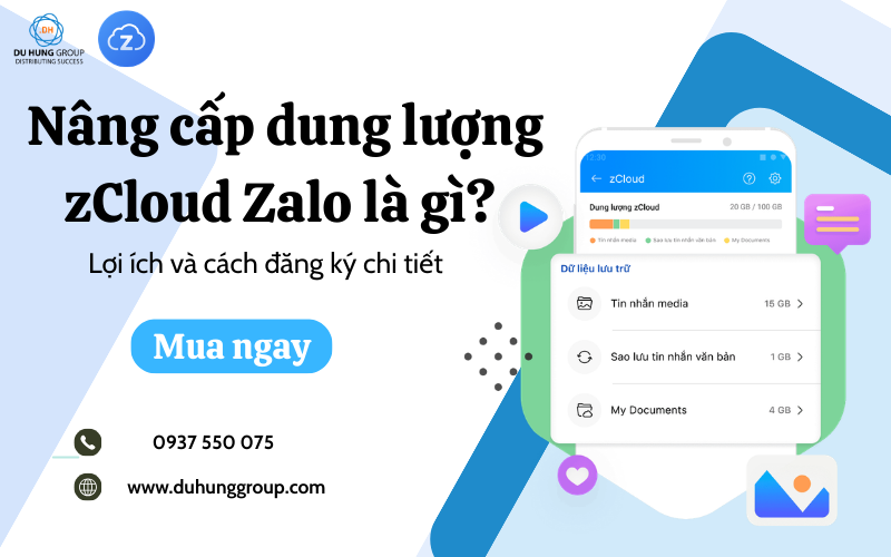 Trong bối cảnh chuyển đổi số mạnh mẽ, Zalo không chỉ là ứng dụng nhắn tin mà còn trở thành công cụ trao đổi công việc và chia sẻ dữ liệu phổ biến. Vì vậy, nâng cấp dung lượng zCloud Zalo đang được nhiều cá nhân và doanh nghiệp lựa chọn để mở rộng không gian lưu trữ, bảo vệ dữ liệu và truy cập thông tin thuận tiện hơn. Vậy nâng cấp dung lượng zCloud Zalo là gì, mang lại lợi ích gì và cách đăng ký như thế nào? Hãy cùng Du Hưng tìm hiểu chi tiết trong bài viết dưới đây.
