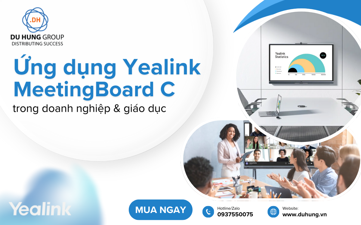 Yealink MeetingBoard C là giải pháp cộng tác All-in-One thế hệ mới, tích hợp màn hình tương tác 4K, hội nghị truyền hình thông minh và bảng trắng số trên cùng một nền tảng duy nhất. Nhờ khả năng kết nối liền mạch, thao tác trực quan và trải nghiệm hình ảnh – âm thanh vượt trội, MeetingBoard C đang được ứng dụng rộng rãi trong phòng họp doanh nghiệp hiện đại và lớp học thông minh, góp phần nâng cao hiệu suất làm việc, chất lượng đào tạo và trải nghiệm người dùng trong kỷ nguyên số. Cùng Du Hưng tìm hiểu chi tiết về Ứng dụng Yealink MeetingBoard C trong doanh nghiệp & giáo dục trong bà viết dưới đây.
