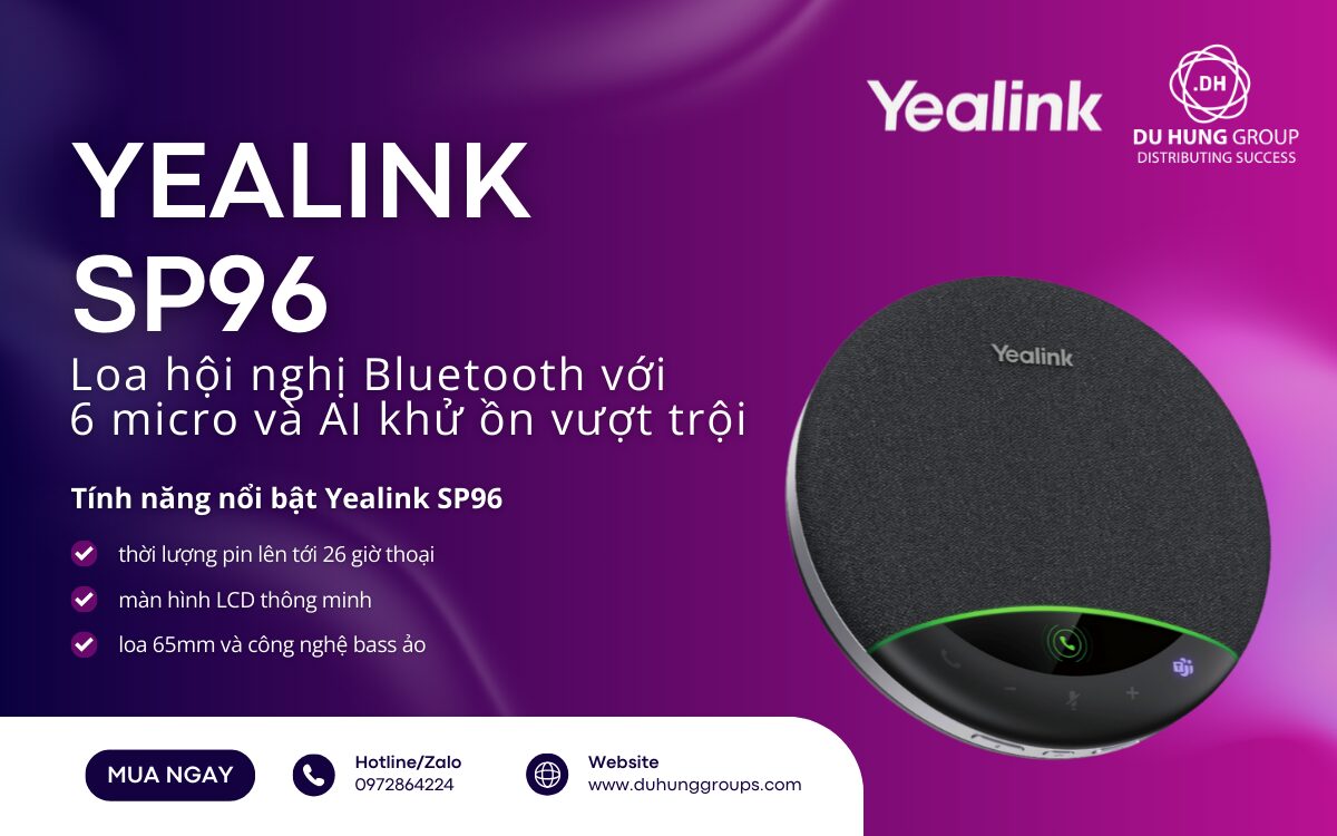 Liên hệ ngay với Du Hưng Group để sở hữu Yealink SP96 – Loa hội nghị Bluetooth với 6 micro và AI khử ồn vượt trội – giải pháp lý tưởng cho những cuộc họp linh hoạt, hiệu quả và chuyên nghiệp!